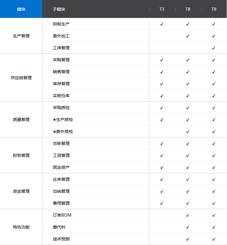 工贸ERP以BOM和工序计划为核心,以存货和工序为基础,管理生产基本数据,支撑生产业务。